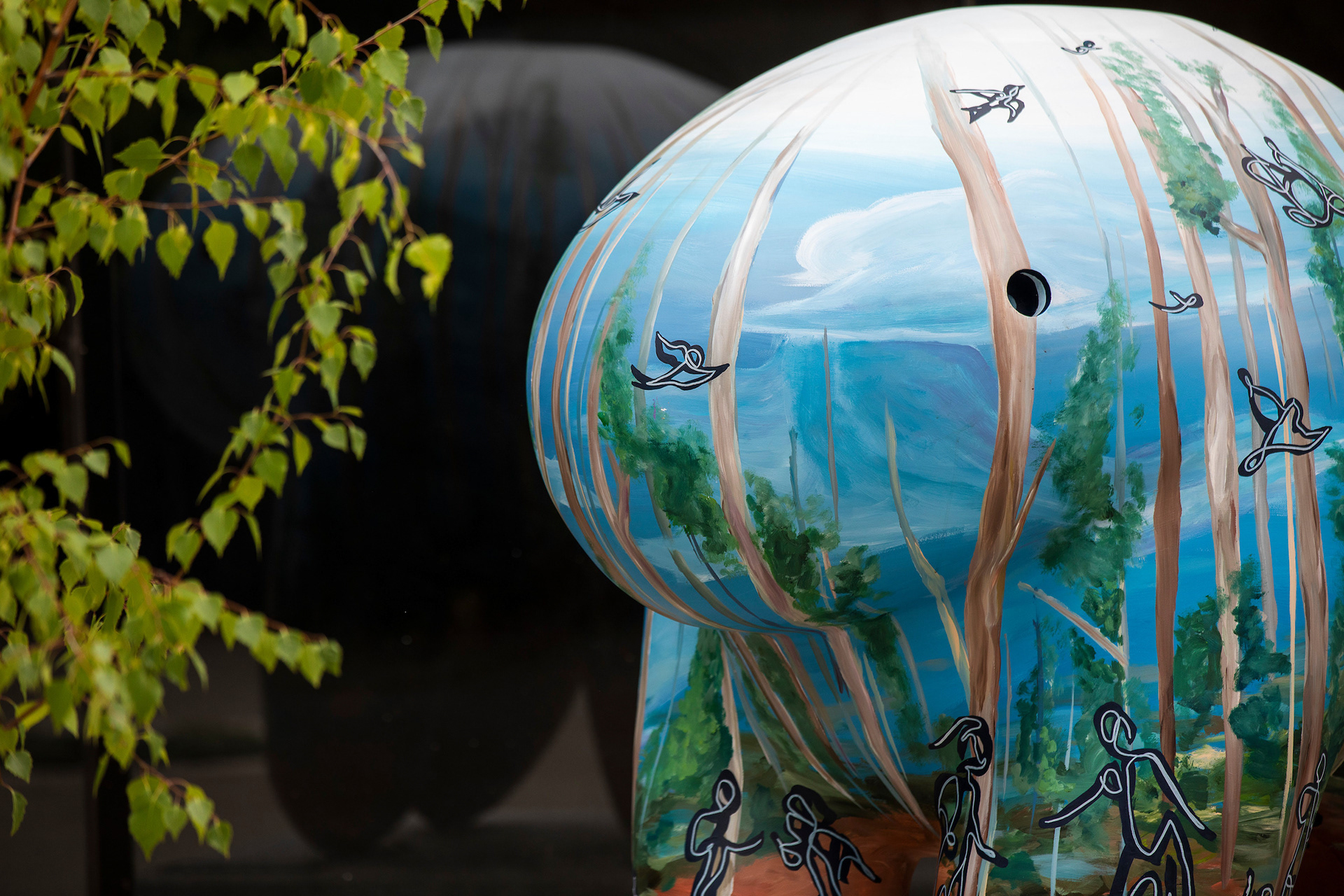 In 2020-21, 100 blank UooUoo sculptures were brought to life by emerging and established Australian artists, including myself. The concept of UooUoo was created by Alexander Knox. Along with my fellow artists, I submitted a design to paint the UooUoo and was accepted. The title of my UooUoo is 'Trees, Birds and Us'. She is now in her forever home in RiverLee HQ on Collins St, Melbourne CBD.
