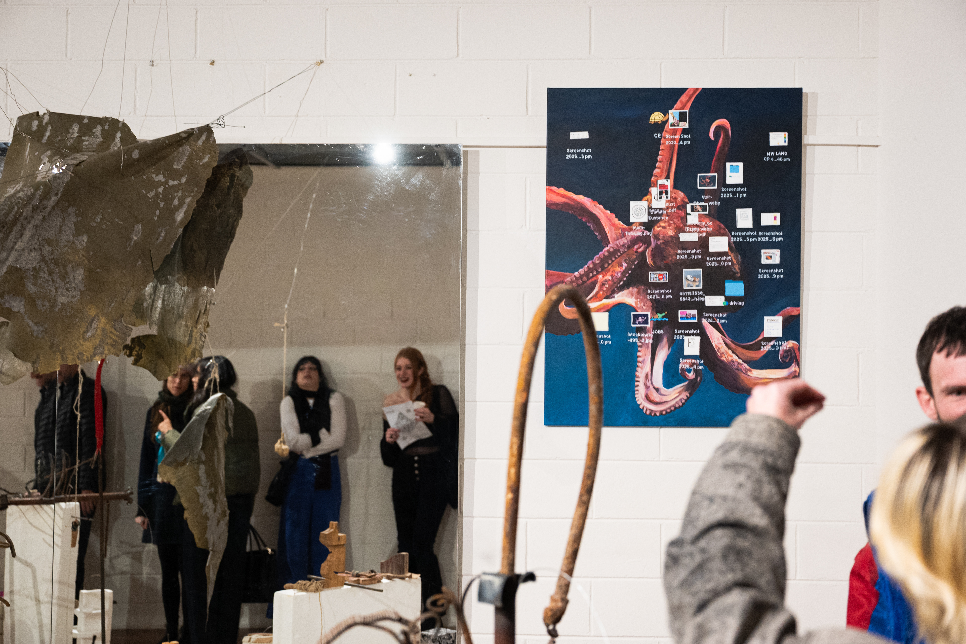Polystyrene flesh office is a shifting state. Static objects rest unactivated, their past lives inextricably linked with human experience. They are materials of anthropomass. We put them in our sacks. Natural and unnatural, we consider their origin and generate a response. Our OverallAnxiety, our creative impulses on display, taken to work, polystyrene carried to the office by flesh. Billboards leering at the top of their poles. The river that used to be there, disfigured by industry into a spillway. Concrete and steel. There used to be flesh in this river. They came and they built slaughterhouses and this river ran red. Now I can see polystyrene cups and plastic bags, I saw ducks, I saw terraformed dirt. I logged on when I got home and I saw how cool you all are. It was facebook at 3:30am what access! WHAT ACCESS!!!? Log in log off delete this delete that. Recently deleted folders clogged up more than the spillway. The spillway will flood, the Maribyrnong will burst her banks again. Log in, enter authentication code - welcome back. Mmmmm.