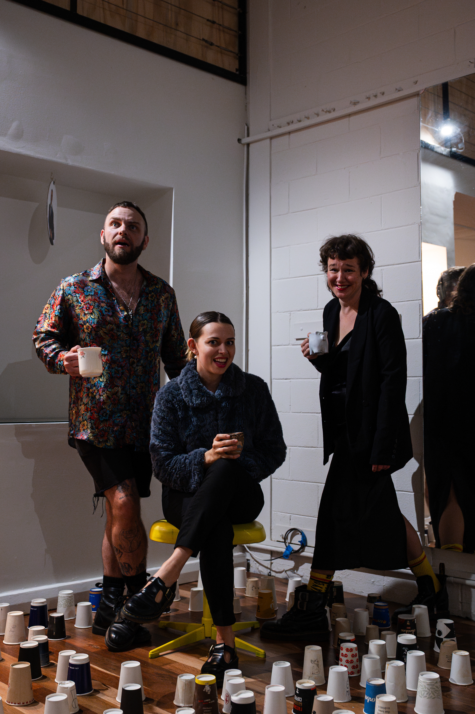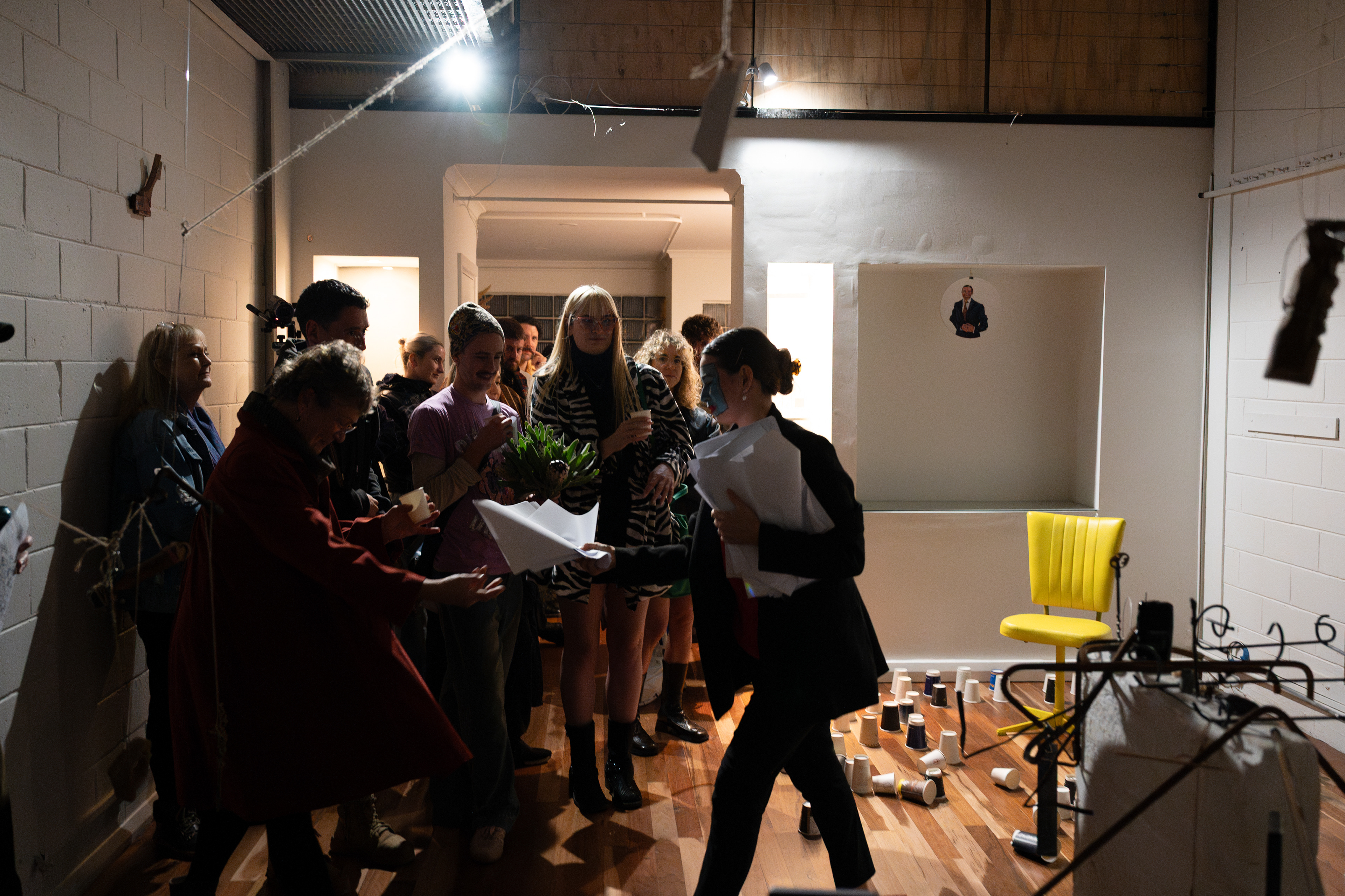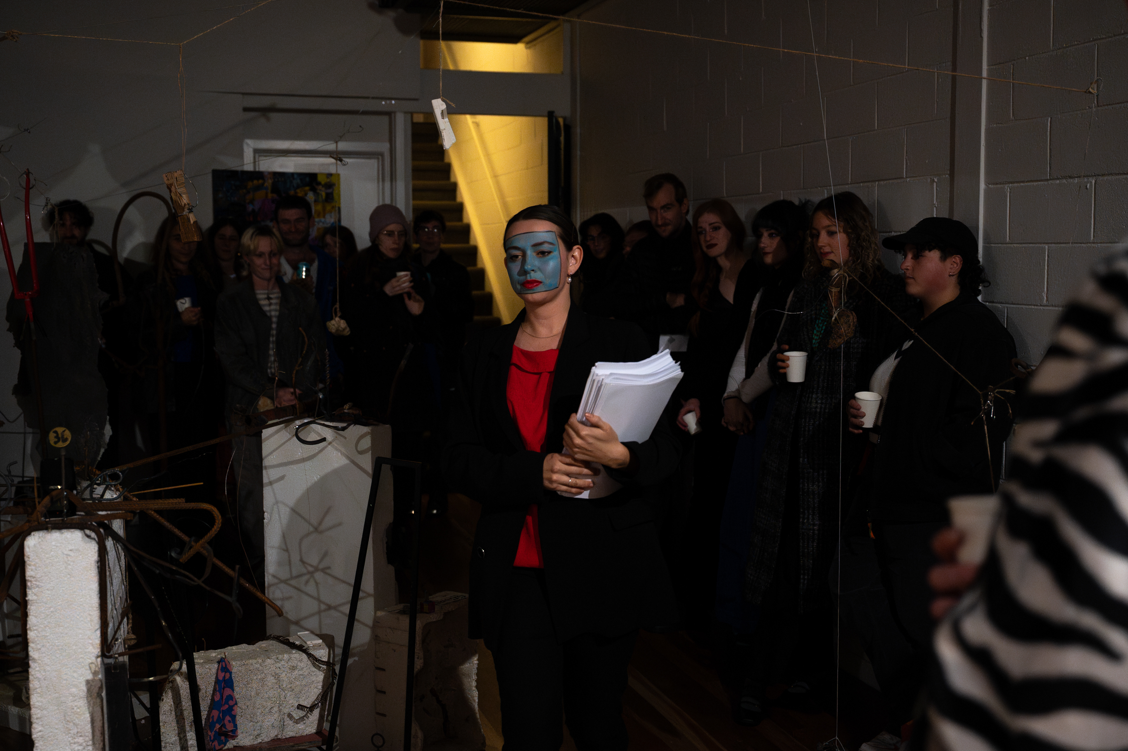 We are happy here in this office. Here in Mixed Zoning we can mix ourselves together. Multi levels multi options infinite configurations lead to infinite moments. You can fold in on yourself here. If you are gentle you can touch entities that welcome your embrace. Mirrored and janky angels guide us, fish in resin, flesh in cloth, the stage is set, pull on the chain pull on the chain. Now hush - they speak. They speak their truths absorbed and integrated through flesh-gathering-world-walking. Scurrying down rivers that were never terraformed, they howl to the moon stark, hysterical, naked. Wearing what they make, a body without rules, a chosen role of other.